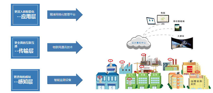 通过大数据、云计算对数据换算、判别,实现监测布点的污染排名、参数统计、对比分析等智能分析功能,为热点网格部署和重点污染防治提供依据。