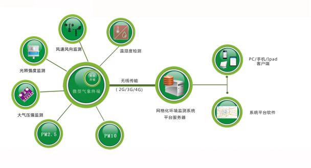 网格化监测设备是一种集数据采集、存储、传输和管理于一体的无人值守的环境监测系统。空气质量环境监测系统采用单元网格布点管理的方式,按照“网定格、格定责、责定人”的理念,建立“横向到边、纵向到底”的区域网格化监控平台,应用、整合多项智慧环保技术,在全面掌握、分析污染源排放、气象因素的基础之上,采用因地制宜的灵活设点方法进行部署。实时统计各厂区、监测点的监测设备数据,并根据各监测点的环境条件及其污染情况,来分析与推测区域内整体的排放情况。实现对热点排放区域整体监控,污染物扩散趋势推算,排放源解析等功能,同时结合物联网、智能采集系统、地理信息系统、动态图表系统等先进技术,整合、共享、开发,建立全面化、精细化、信息化、智能化的区域环境在线监测平台,实现对控制污染源无组织排放,减少大气污染等综合管理,为制定节能减排方案提供可靠的数据信息和科学的辅助管理决策。