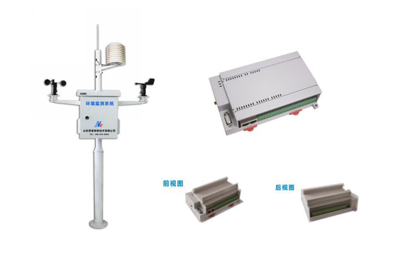 系统硬件终端由PM2.5、PM10、空气温湿度、风速风向、气压、噪声、光照等传感器监测设备、数据采集主控、电源和其它辅助支架立杆等设备组成。